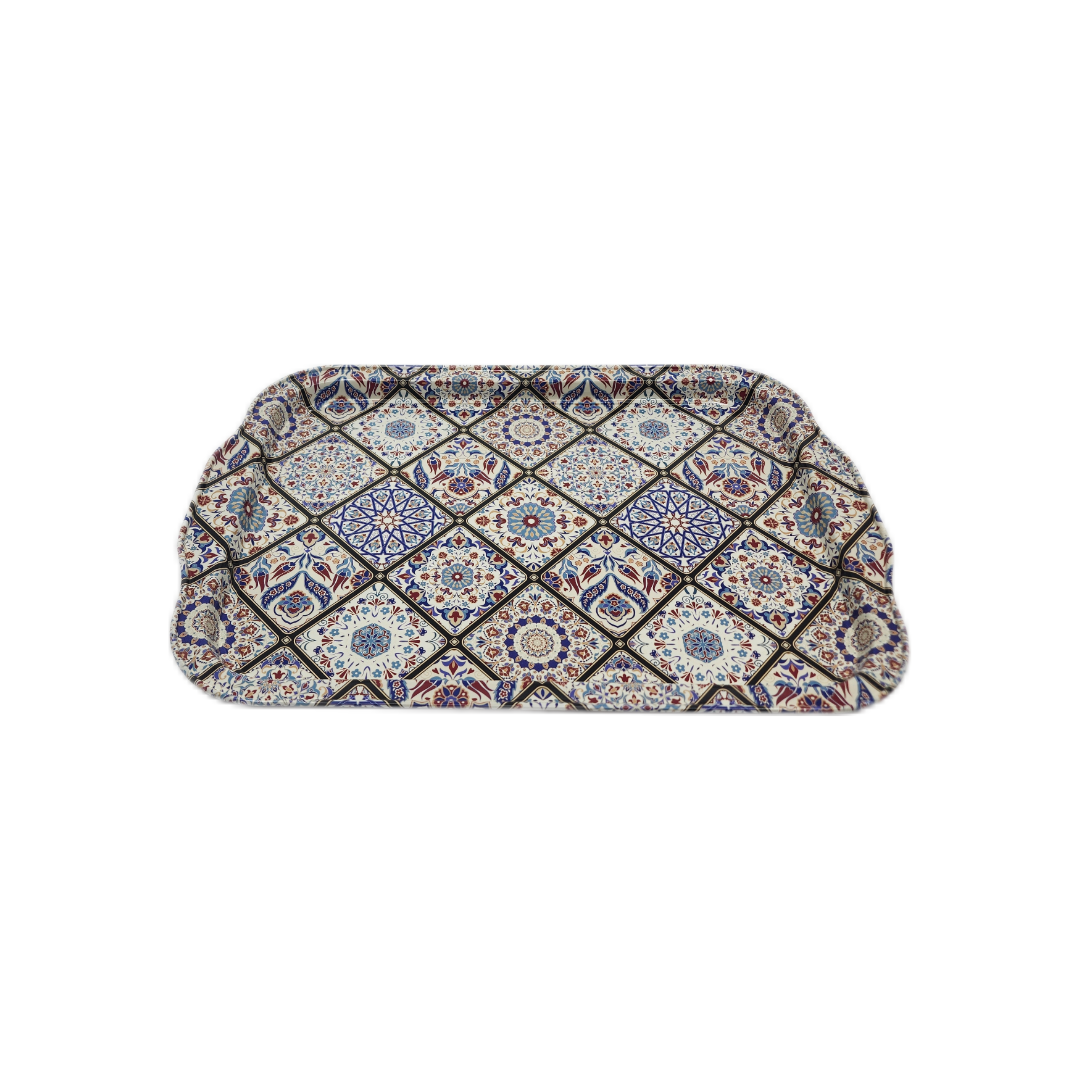 Stylish metal double-sided printed tray for coffee tables, sideboards or countertops. It is also ideal for housing jewelry and beauty products on a dressing table or bathroom.