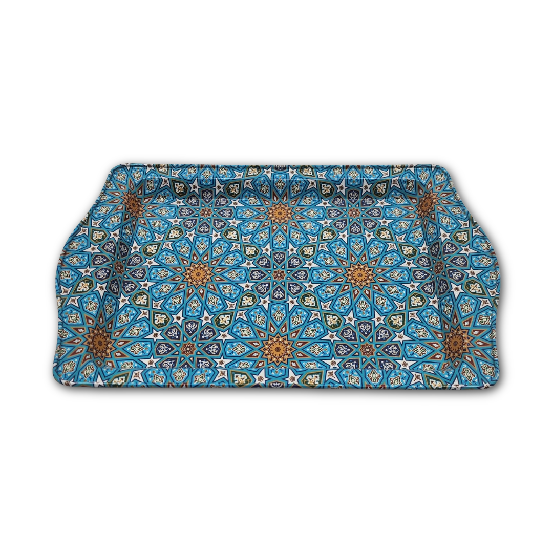 Stylish metal double-side printed tray for coffee tables, sideboards or countertops. It is also ideal for housing jewelry and beauty products on a dressing table or bathroom.